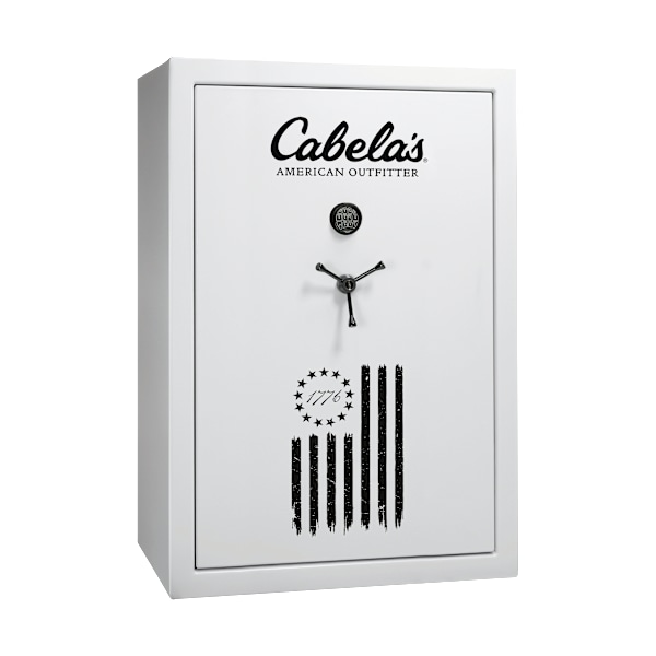 The Cabela’s American Outfitter 48-Gun E-Lock Gun Safe locks in and secures your handguns, long guns, and other family valuables insides its solid construction and organizes it all with generous inner space, shelving layout, and interior door panel. 4″ wide, 3/16″ thick military-style locking bars create the ultimate defense against prying. The Firearm Safe is constructed with a 2-piece, roll-form, 12-gauge steel body that houses three 5/8″ layers of fire protection in the ceiling, door jambs, and door. This adds up to an impressive 68,000-BTU fire resistance score. Rated for 40 minutes at 1,200F. Mfrs. Lifetime warranty. Secures long guns, handguns, and valuables Interior door panel Military-style locking bars Stronger 12-gauge roll-form body 14-gauge door 40-minute fire protection at 1,200F